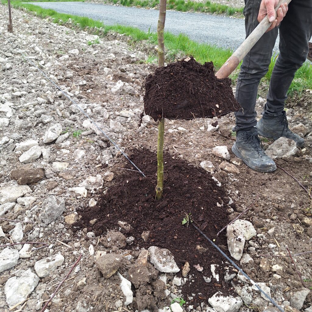 Episode 2 : Premières activités post plantation. En ce début de printemps nous avons enfin une météo plus clémente. Cela nous donne l’occasion de revenir au verger quelques heures afin de peaufiner notre plantation. La mise en terre des arbres en janvier a été interrompue par la pluie. Le cumul des précipitations et les impératifs professionnels de chacun ne nous ont pas permis de finaliser la plantation cette saison. Nous l’achèverons à partir de novembre prochain. Ce décalage de plantation n’aura aucun impact sur notre projet final, il vaut mieux patienter et planter à la bonne période et dans de bonnes…