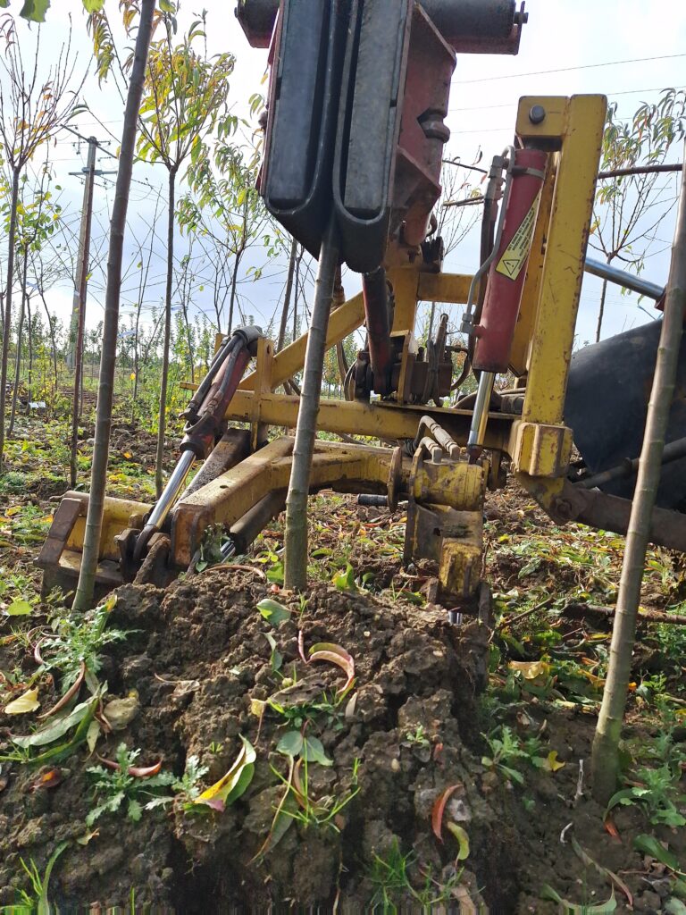 Autre méthode, l’emploi d’une arracheuse individuelle attelée sur notre tracteur vigneron. Ce petit tracteur passe sans problème entre les rangs d’arbres, c’est aussi avec celui-ci que nous travaillons nos sols tout le reste de l’année.