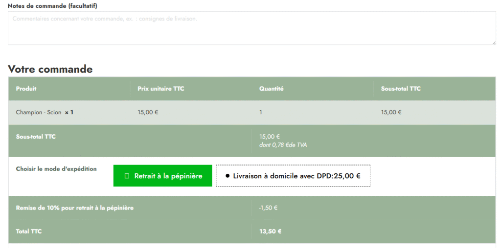 Vous avez peut-être opté pour un retrait à la pépinière, nous aurons ainsi la chance de vous accueillir et de vous rencontrer.