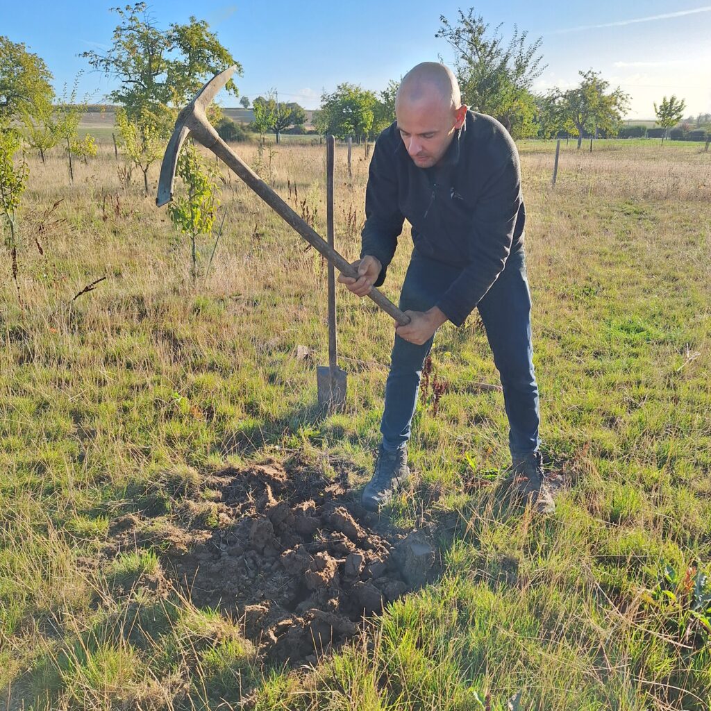Pour préparer quelques trous, les outils de jardin classiques suffiront. Munissez-vous d’une pelle, d’une pioche et d’un peu d’huile de coude. Si vous envisagez de planter beaucoup d’arbres, nous vous recommandons de prévoir une mini-pelle. Ainsi vous peinerez moins et les trous seront bien fait et de taille adéquate.