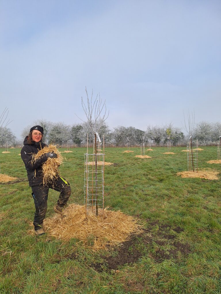 Enfin, une épaisse couche de paille est déposée au pied de chaque fruitier afin de :