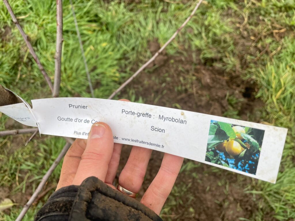 Pour finir, Jeanne a relevé toutes les variétés afin de faire un plan du verger. Les étiquettes ne sont pas assez résistantes pour traverser toutes les saison. Nous vous recommandons toujours de noter l’emplacement de chaque variété et de retirer les étiquettes dès que possible.