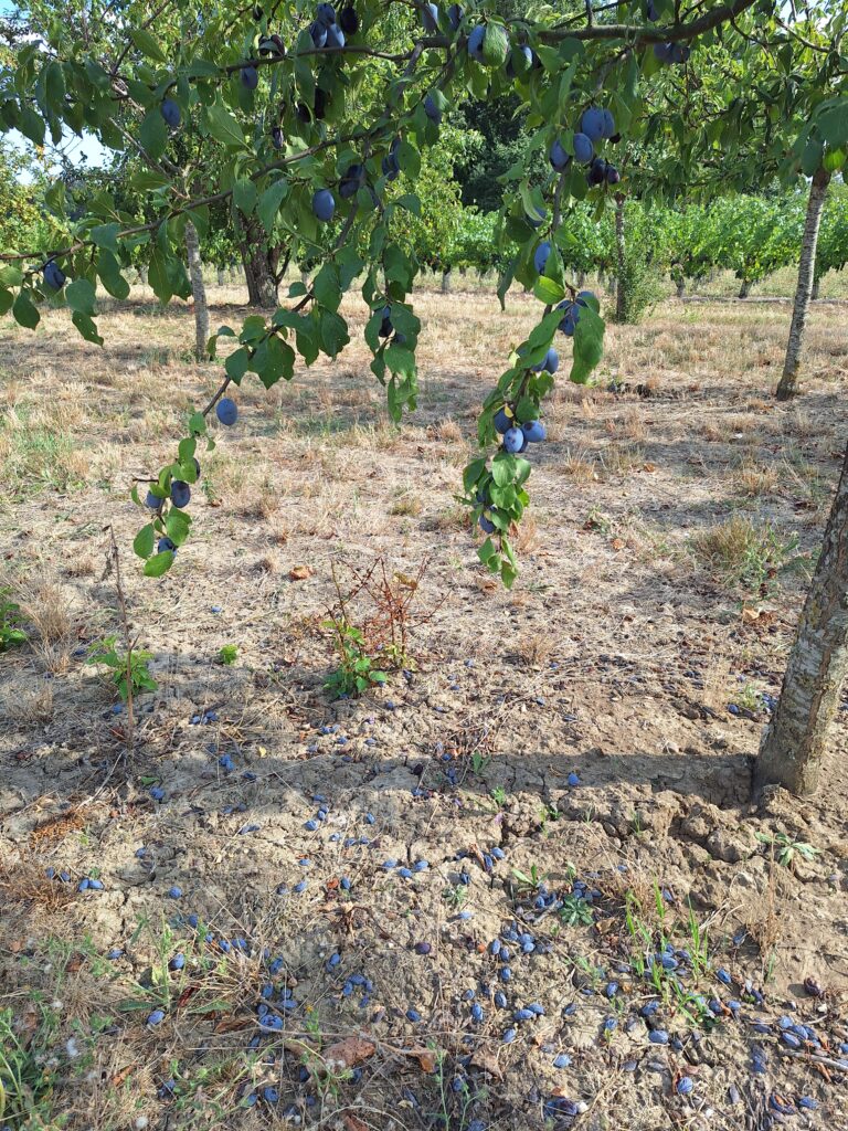 Prunier Questsche d’Alsace ayant fait chuter précocement ses prunes pour se préserver.