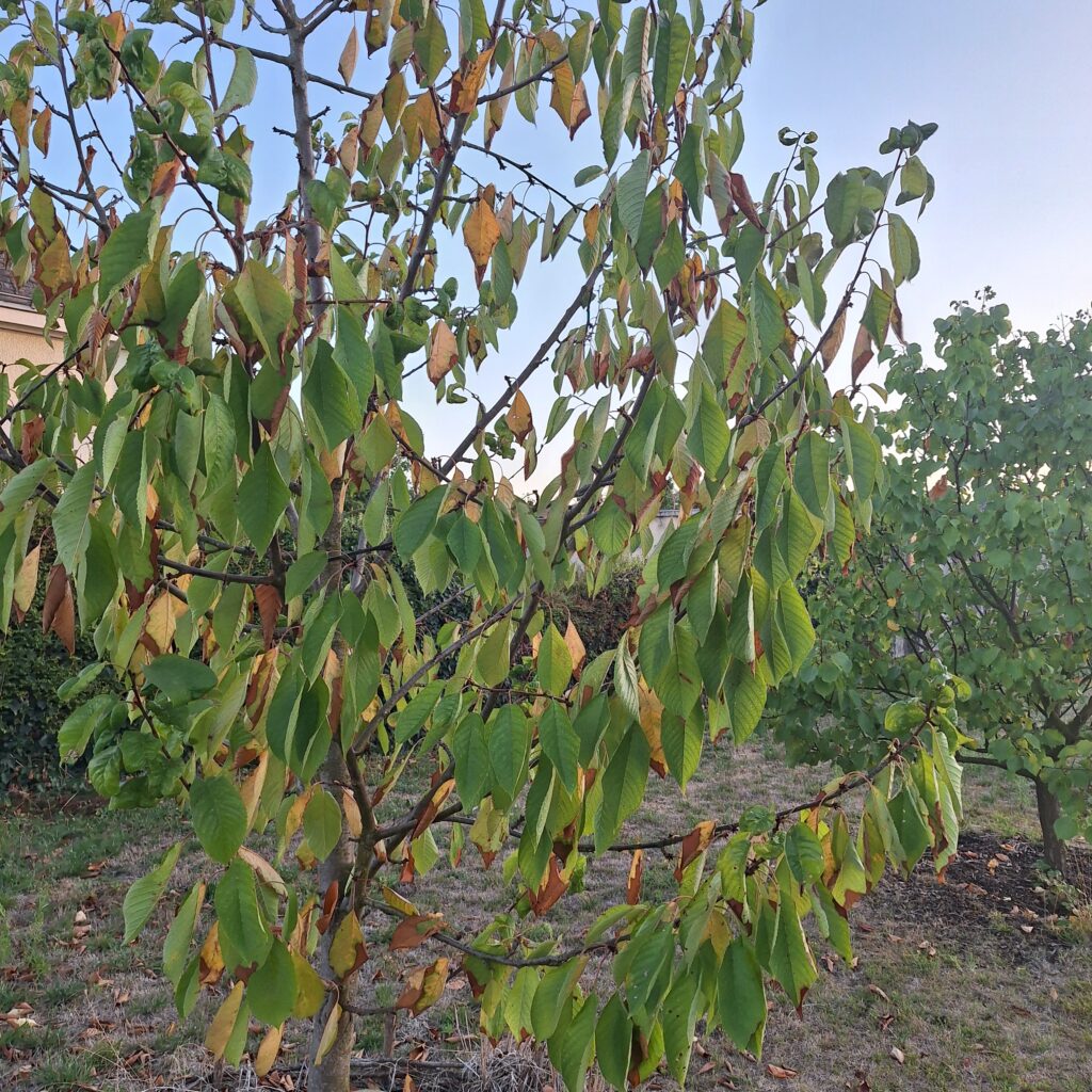 Chute de feuilles précoce en août sur un cerisier Noire de Meched.