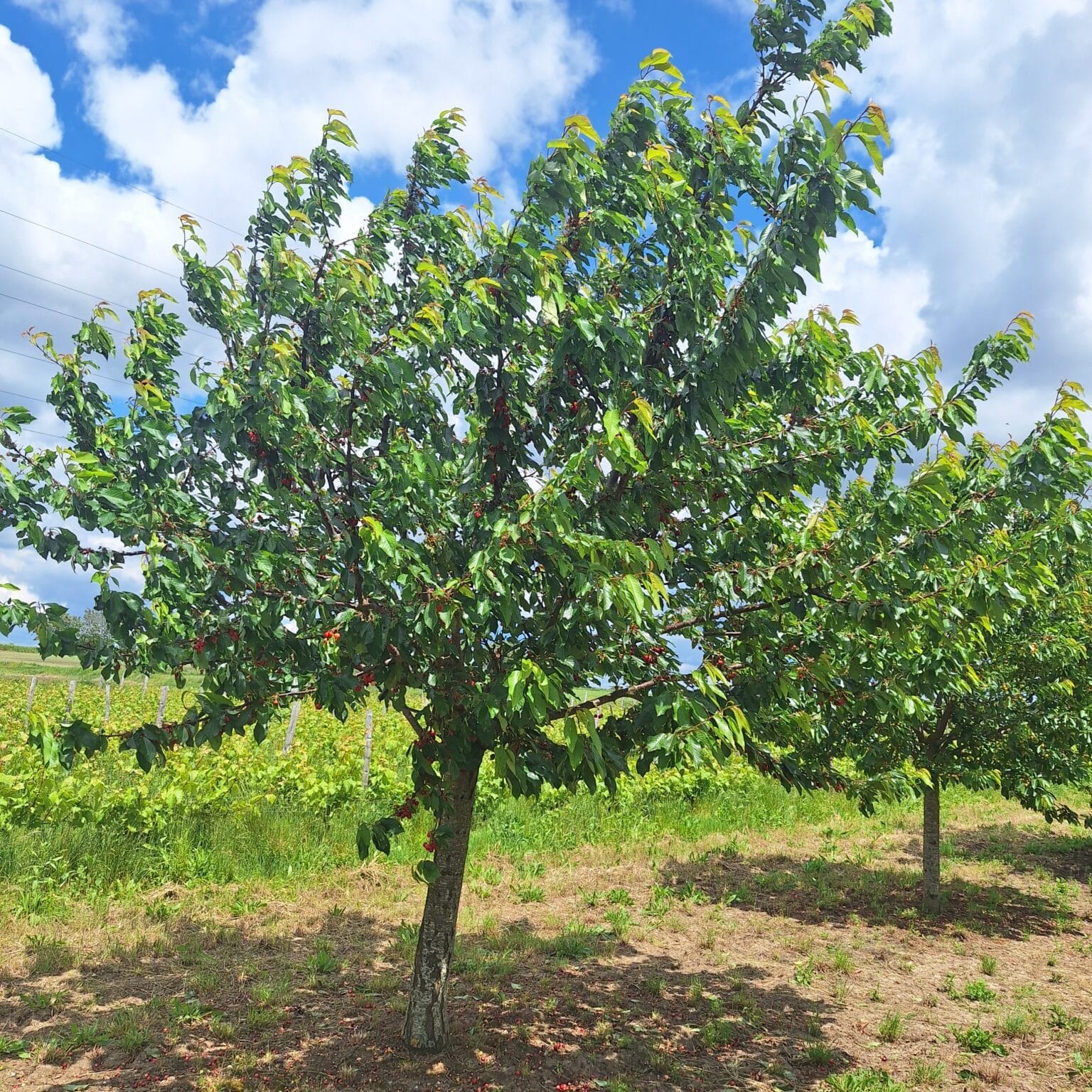 Croquez dans des cerises Burlat, et vous serez conquis par leur chair juteuse, ferme et croquante, à la saveur sucrée délicatement acidulée. Considérées comme l’élite des bigarreaux, ces cerises de gros calibre (environ 2,5 cm de diamètre) arborent une robe rouge foncé virant presque noire à maturité. Impatient de déguster vos propres cerises ? Le Burlat est un champion de la précocité. Attendez-vous à une récolte dès la fin mai, début juin, faisant de lui l’une des variétés les plus hâtives (légèrement après précoce de Bernard). La saison s’étend sur deux semaines environ, vous laissant le temps de savourer et de transformer ces fruits en toute tranquillité. Le cerisier Burlat n’est pas du genre compliqué. Rustique, il s’adapte à la plupart des climats tempérés, résistant au froid hivernal jusqu’à -20°C. Côté sol, il apprécie un terrain fertile et bien drainé, et s’épanouit en plein soleil, tolérant tout de même la mi-ombre. Pas besoin de planter un autre cerisier à ses côtés, il est auto fertile et produira sans problème. Enfin, sa faible vigueur le rend facile à tailler, pour un entretien sans souci. Le cerisier hâtif Burlat est un arbre fruitier plein de promesses. Avec ses fruits savoureux et sa facilité de culture, il deviendra sans aucun doute la star de votre jardin et vous offrira une récolte précoce de cerises d’exception.